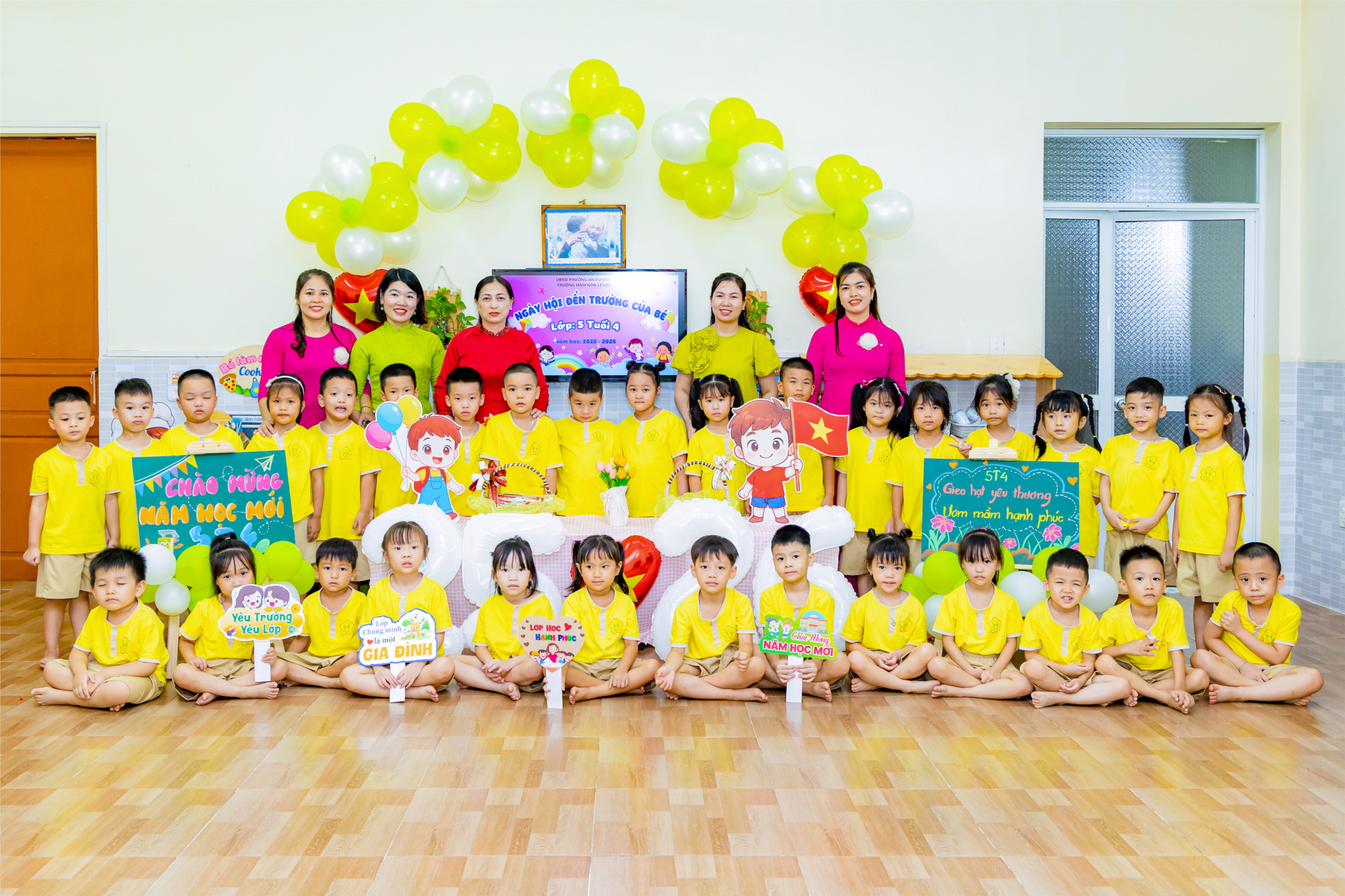 Một năm học mới lại bắt đầu, không khí rộn ràng, tươi vui đã tràn ngập khắp nơi và lớp 5 tuổi 4 cũng vậy. Trong sắc cờ hoa rực rỡ, những gương mặt bé thơ rạng ngời, nụ cười trong veo cùng ánh mắt hồn nhiên làm cho “Ngày hội đến trường của bé” thêm phần ý nghĩa.