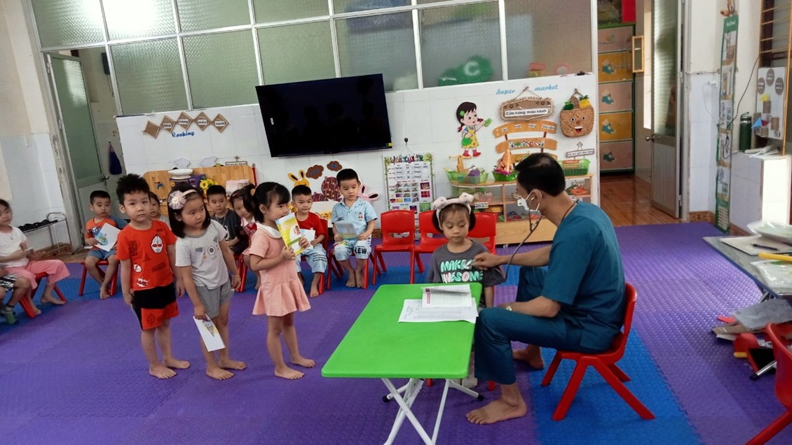 Dưới dây là một số hình ảnh khám sức khoẻ cho trẻ đợt 2 - năm học 2022-2023 tại lớp MG 4T4: