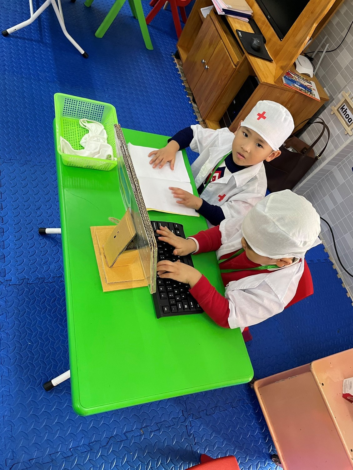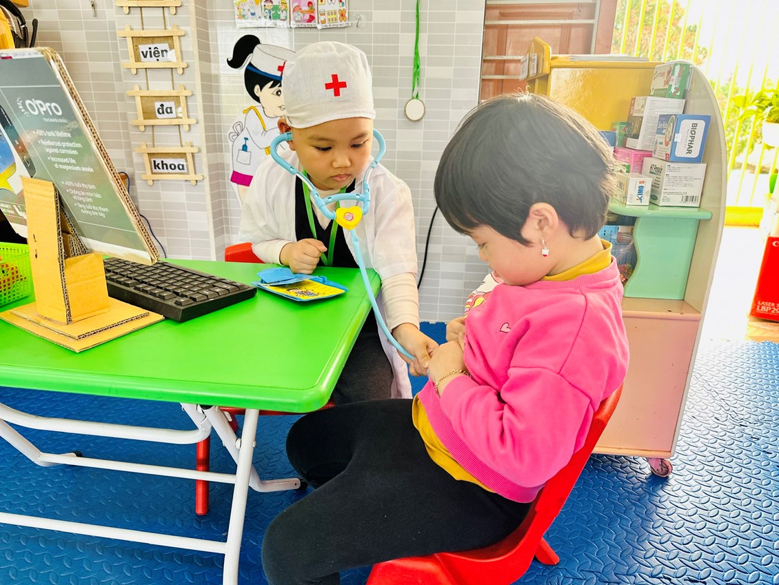 Bé thích làm bác sĩ khám bệnh cho mọi người