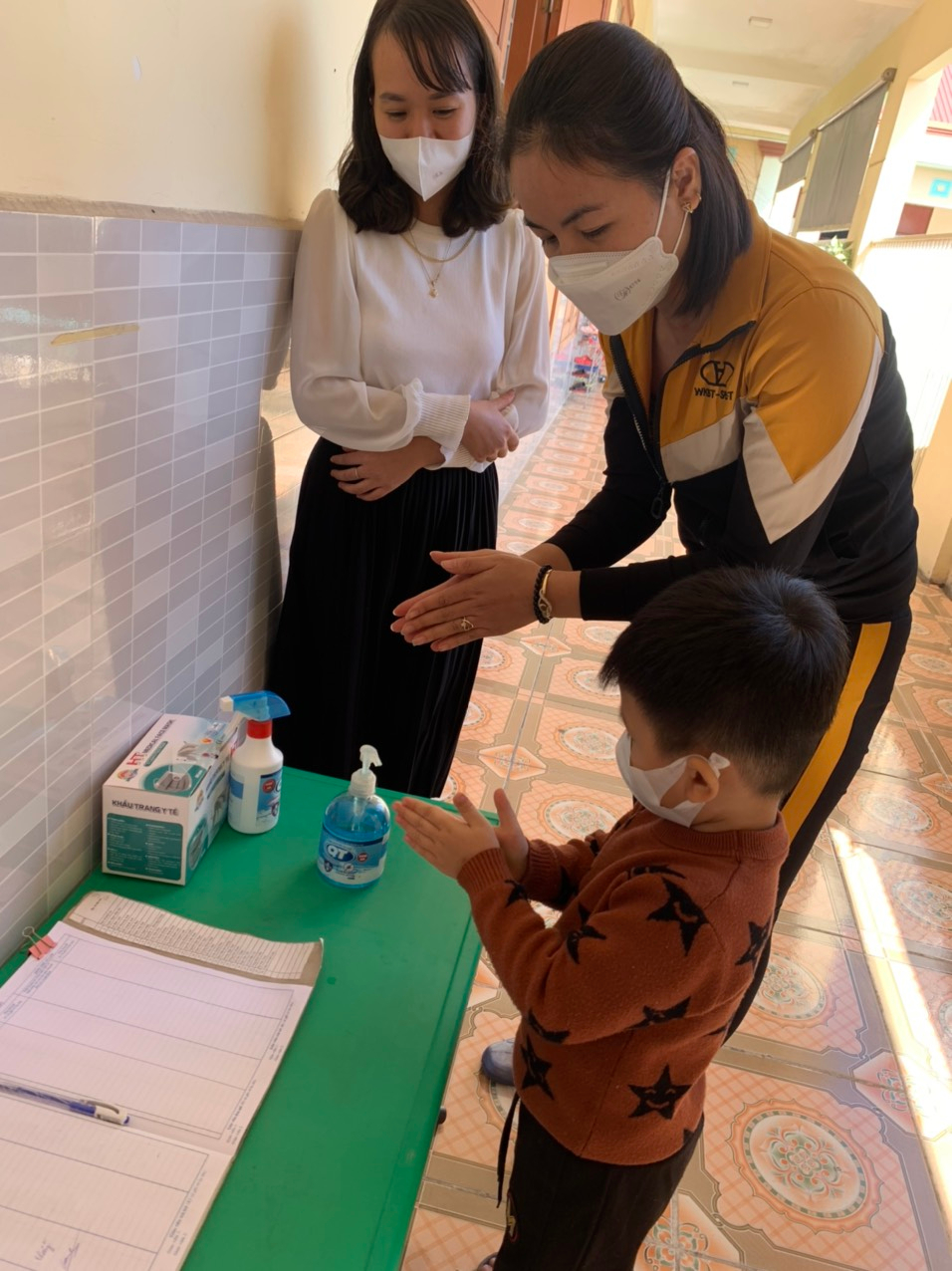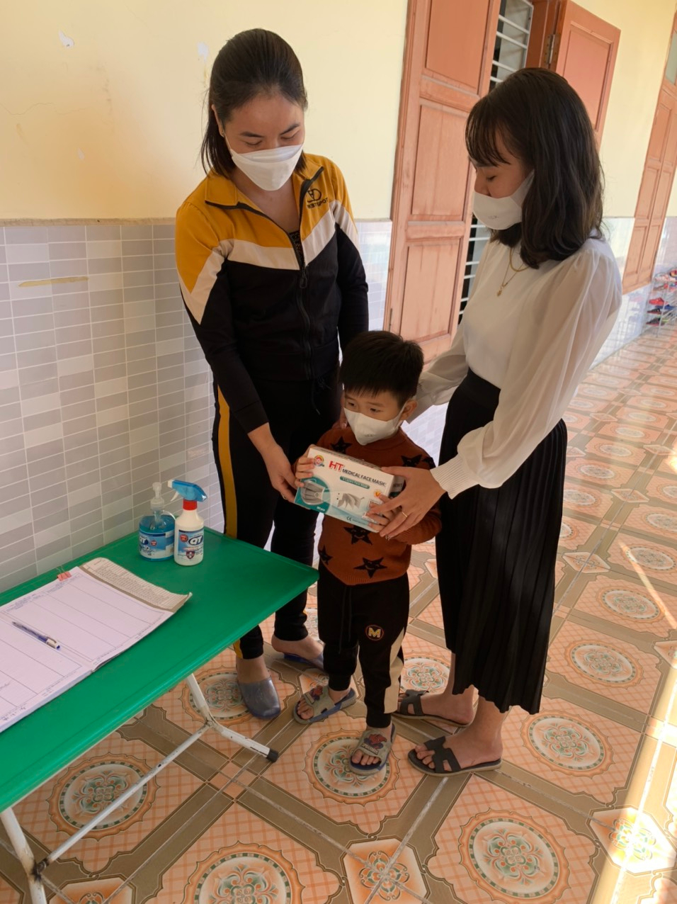 - Vận động phụ huynh chung tay hỗ trợ khẩu trang và dung dịch sát khuẩn.