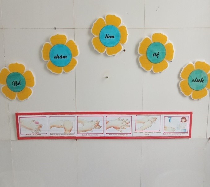 1. Cung cấp kiến thức cho trẻ rửa tay bằng xà phòng đúng cách theo 6 bước và rửa tay bằng dung dịch sát khuẩn