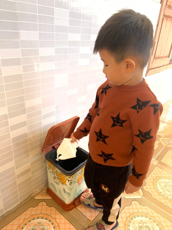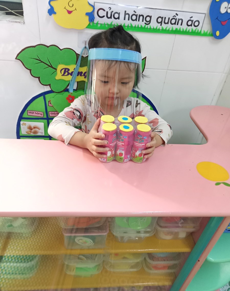 2. Sáng tạo ra mũ bảo vệ, chắn giọt bắn và hướng dẫn trẻ đeo trẻ đeo khẩu trang y tế hoặc khẩu trang vải đúng cách và vứt rác đúng nơi qui định