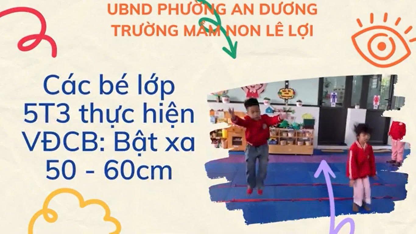 Hoạt động vận động bật xa 50–60cm là một nội